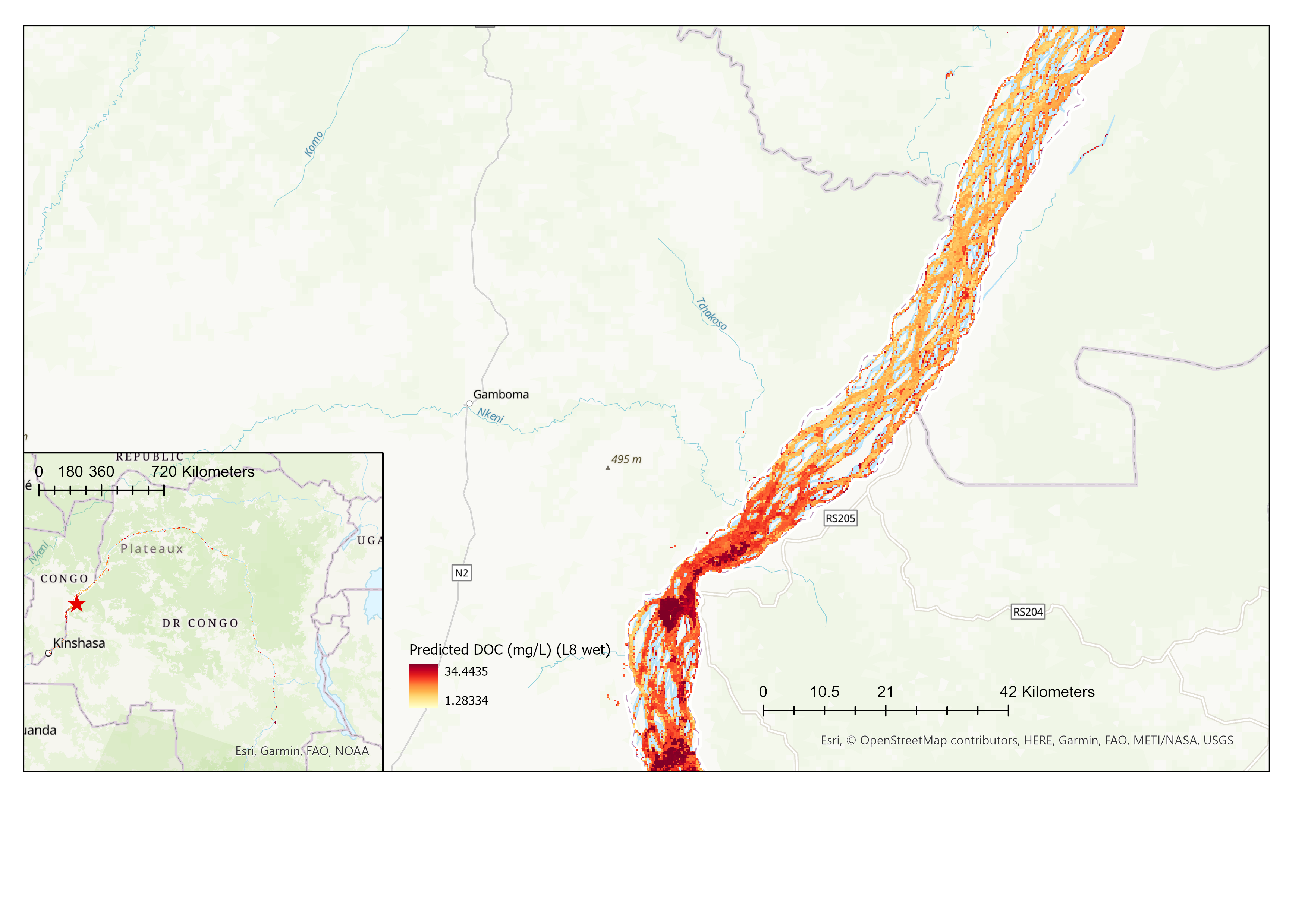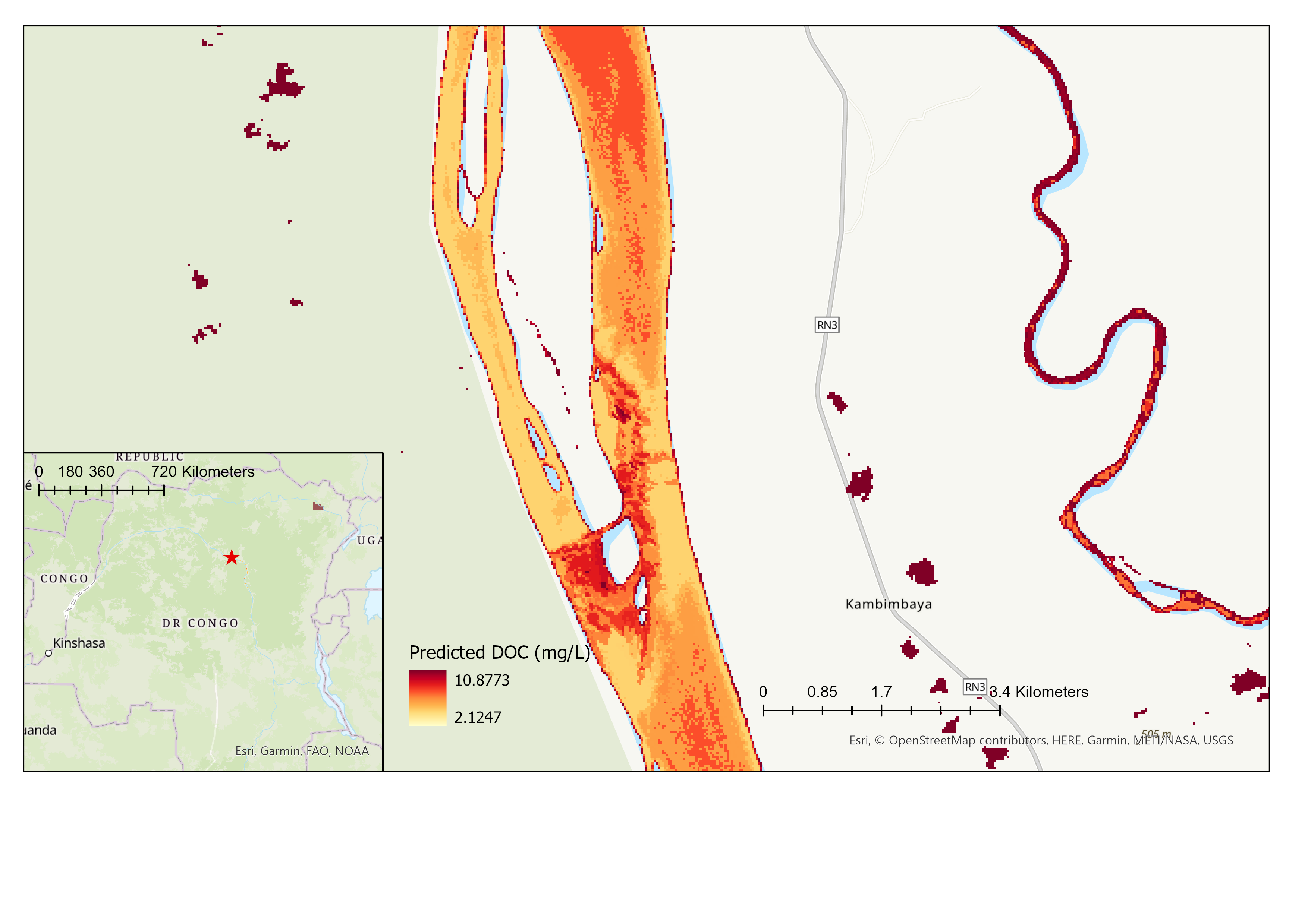 - Few observations to train the models, especially in comparison with the extent of the Congo River which extends over thousands of kilometers, while inland waters are optically complex systems and therefore more challenging than other systems for remote sensing (Palmer, 2015).